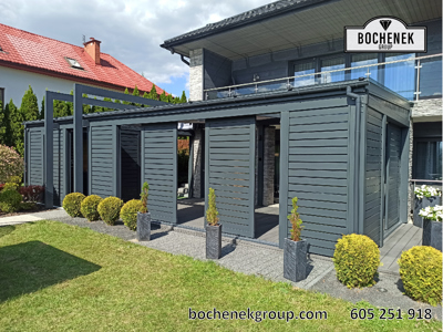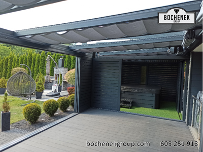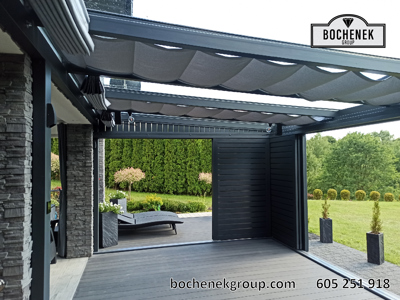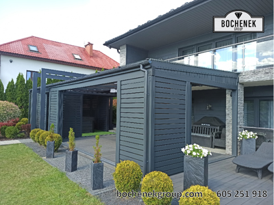 Model Zenit to doskonały przykład połączenia klasycznej elegancji z nowoczesnymi rozwiązaniami technologicznymi. Konstrukcja została zaprojektowana tak, aby naturalnie przedłużyć bryłę budynku, tworząc przytulną przestrzeń wypoczynkową dostępną niezależnie od warunków pogodowych.